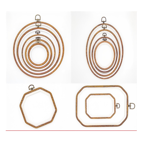 Different Shapes and Sizes: The faux wood Cross stitch hoops with different size and shapes are perfectly for embroidered cloths.