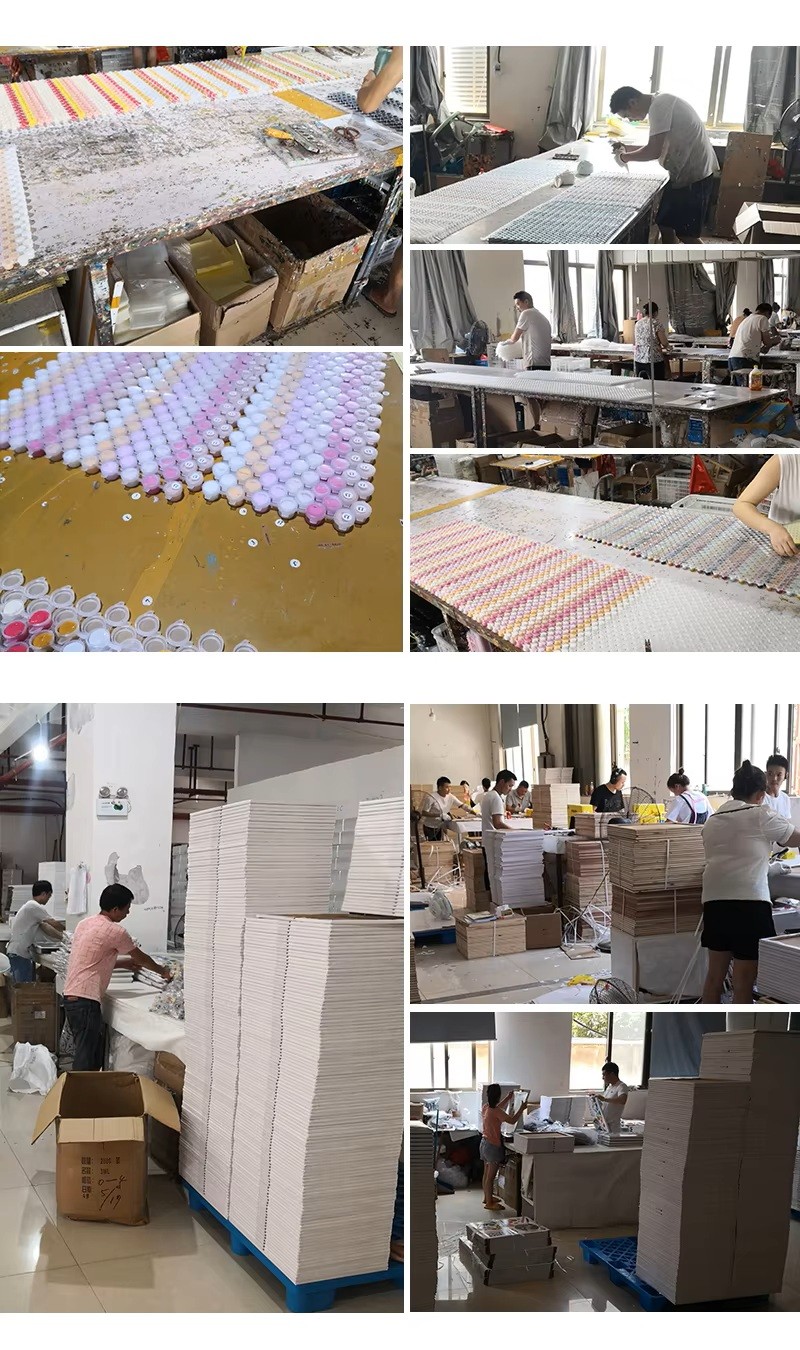 a.Inquiry--send us details information, like how many designs, design size, what kind of diamonds, partial drilled or full drilled, with frame or without frame, what kind of package, inner pack and master pack, quantity etc. b.Quotation--we’ll work out the cost according to your detail information. c.Order--Confirm formal order and make deposit payment d.Sampling-- send us all details for sampling, we’ll make technical files for approve at first, then make physical sample after the technical files are approved e.Production--start mass production after samples are approved f.Shipping--LCL, FCL, Sea, Air, Express