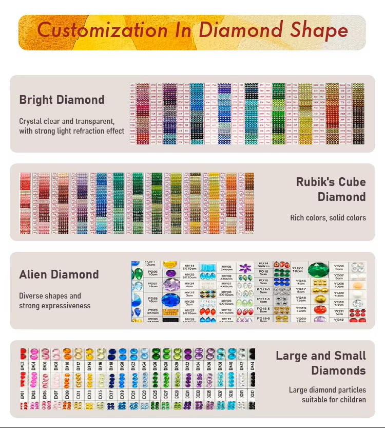 a.Inquiry--send us details information, like how many designs, design size, what kind of diamonds, partial drilled or full drilled, with frame or without frame, what kind of package, inner pack and master pack, quantity etc. b.Quotation--we’ll work out the cost according to your detail information. c.Order--Confirm formal order and make deposit payment d.Sampling-- send us all details for sampling, we’ll make technical files for approve at first, then make physical sample after the technical files are approved e.Production--start mass production after samples are approved f.Shipping--LCL, FCL, Sea, Air, Express