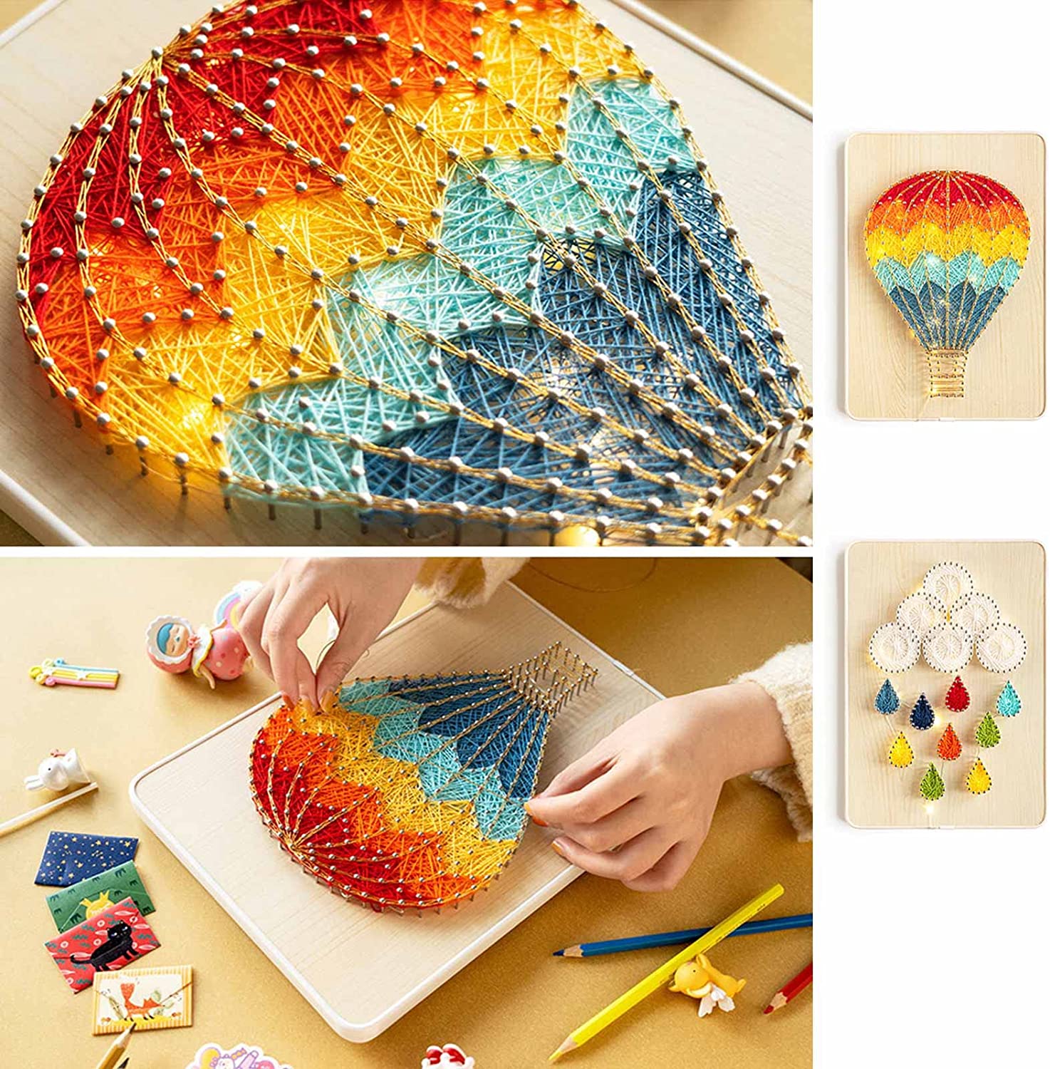 Excellent Creation Kit – DIY String Art Kit for a different lifestyle. Its main body is a high-quality metal-edged wooden board with prefabricated patterned holes, you just need to hammer a nail into the hole and wrap the wire to complete it, it allows you to learn to reduce stress, adjust your mood, Build confidence and perseverance and develop patience.