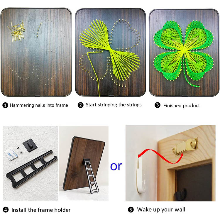 【High-Quality Material】 Colored silk thread, not easy to fade and break; high-quality metal nails, not easy to rust and deform; High-quality environmentally friendly polymer frame, wood grain density board.