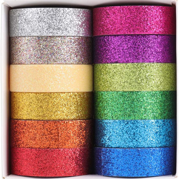 DIY WASHI TAPE: The glitter tape is very environmentally friendly and can be used to decorate masks, cards, Easter eggs, frames, diaries, books, crafts, planners, bullet diaries, etc. It is especially suitable for Christmas gift packaging as well!
