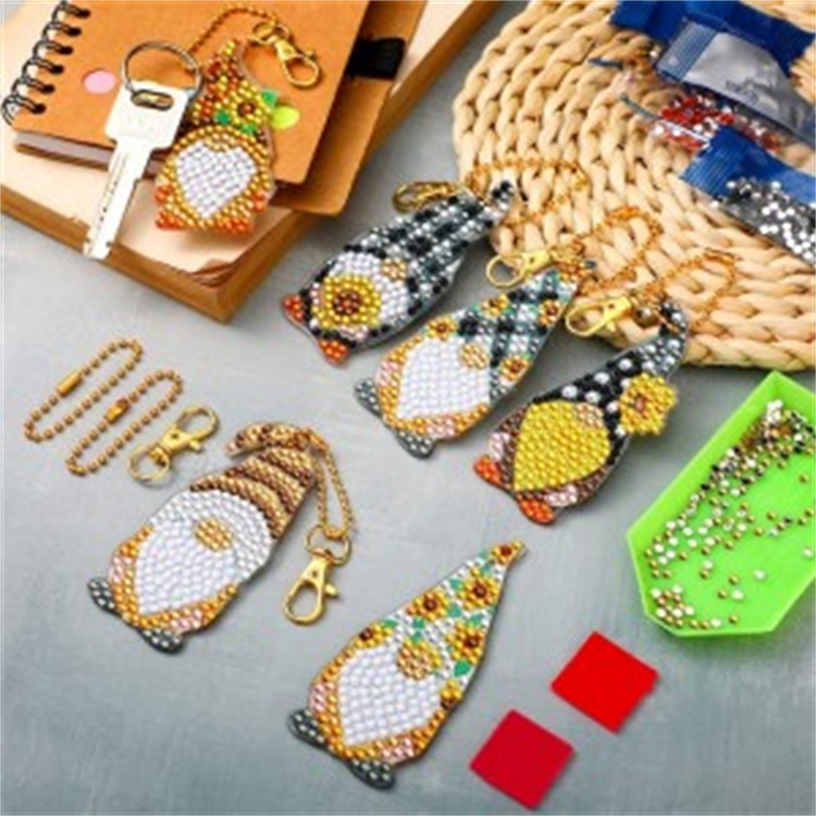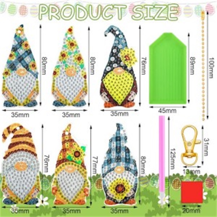 BA-811 6 Pack Diamond Painting Keychains Kit Sunflower Gnome Spring Garden Summer Farmhouse Buffalo Plaid Sunflower Elf 5D DIY Diamond Painting Spring Summer Gnome for Beginners Kids Adults (Sunflower