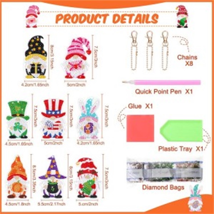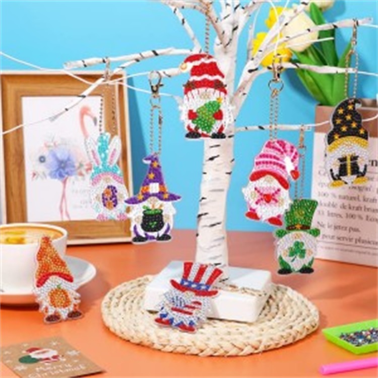 BA-812 12 Pcs Holiday Gnomes Diamond Painting Keychain Kits, 5D DIY Gnome Diamond Art Keychains Double Sided Gnome Diamond Painting Rhinestone Painting Decorative Accessories for Kids Adults Backpack