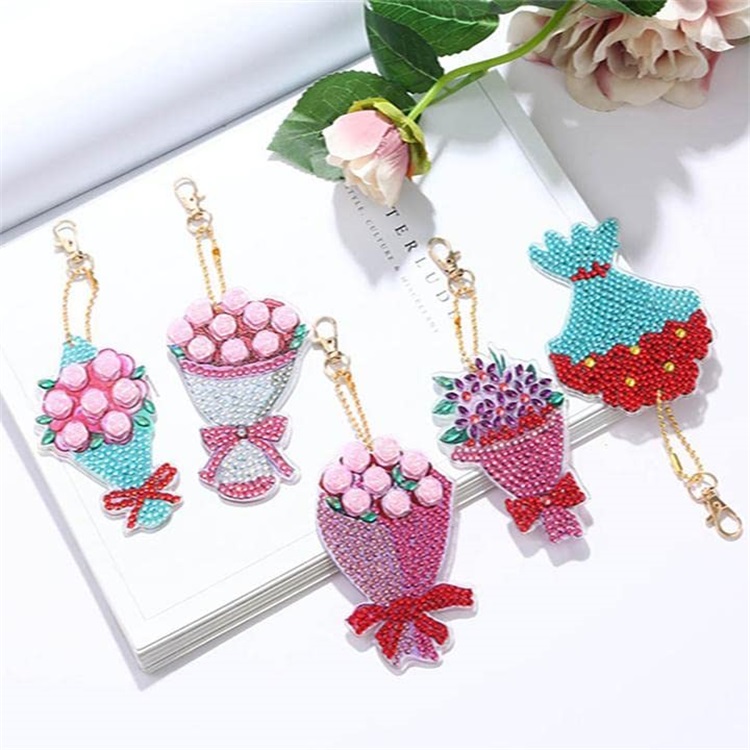 BA-818 DIY 5D Diamond Painting Keychain 8 PCs Mandala Design Rhinestone Painting Key Chain Pendant Handicraft Key Chain for Art Craft Beginner Adults