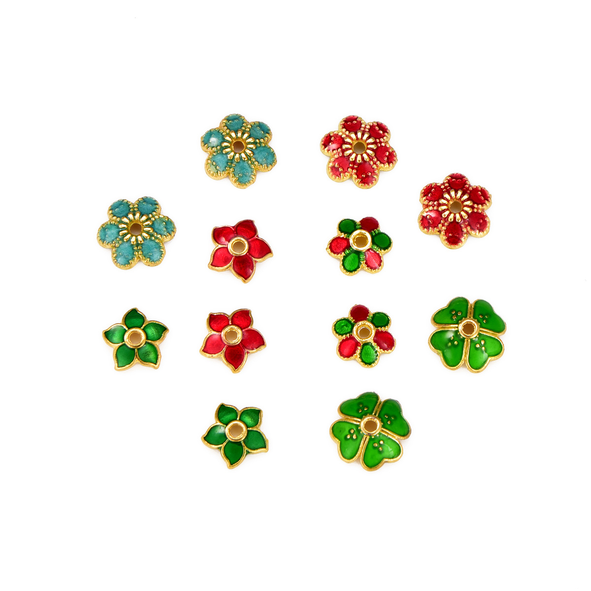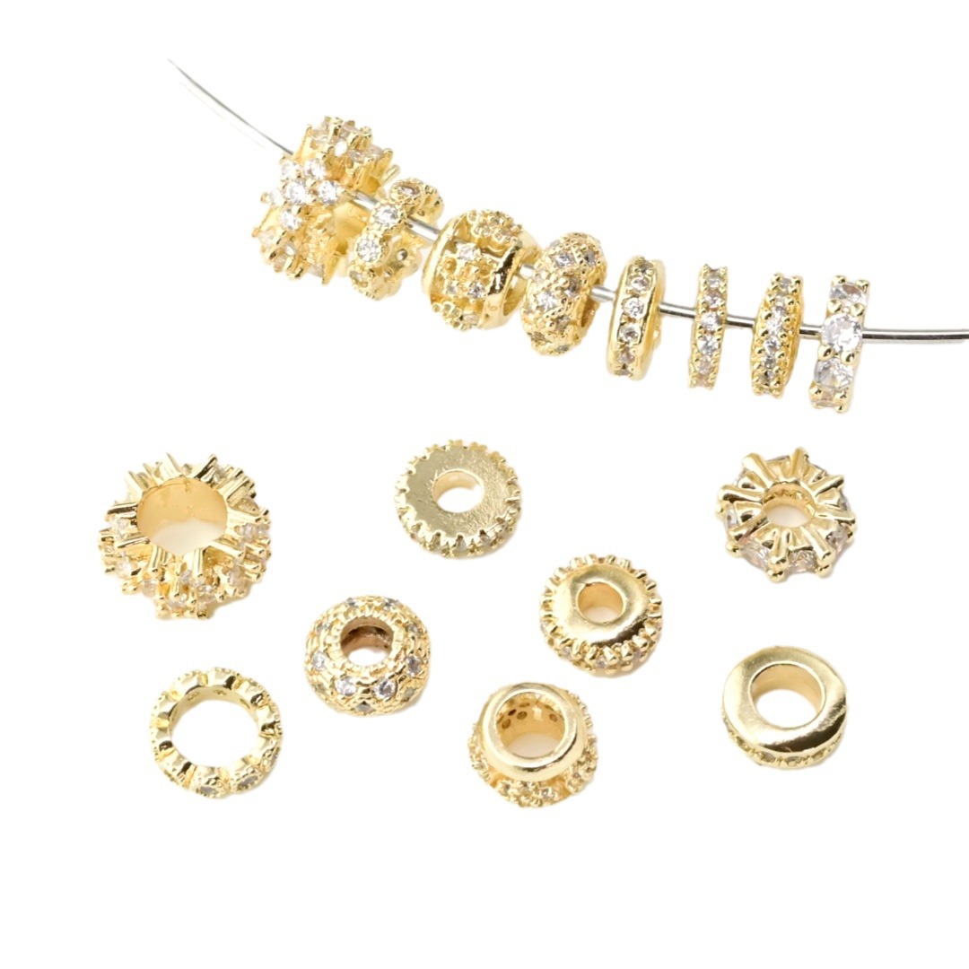 Bead caps and Spacers are made of alloy, brass, iron, silver etc. material in a great variety designs, plain, flower, with rhinestones etc.. They are ideal for beading, add extra details to jewelry making.
