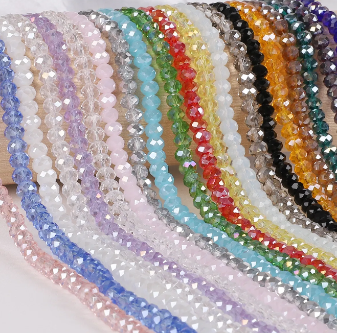 These crystal glass beads are made of crystal glass, with different shapes like bicone, rondelle, tear drop, oval etc., and in many colors. They are the perfect accents to any beading, crafting or jewelry making project, add sparking, and your DIY demands to create a lovely finishing for your jewelry crafts, such as bracelets, necklace, earrings and beaded items.