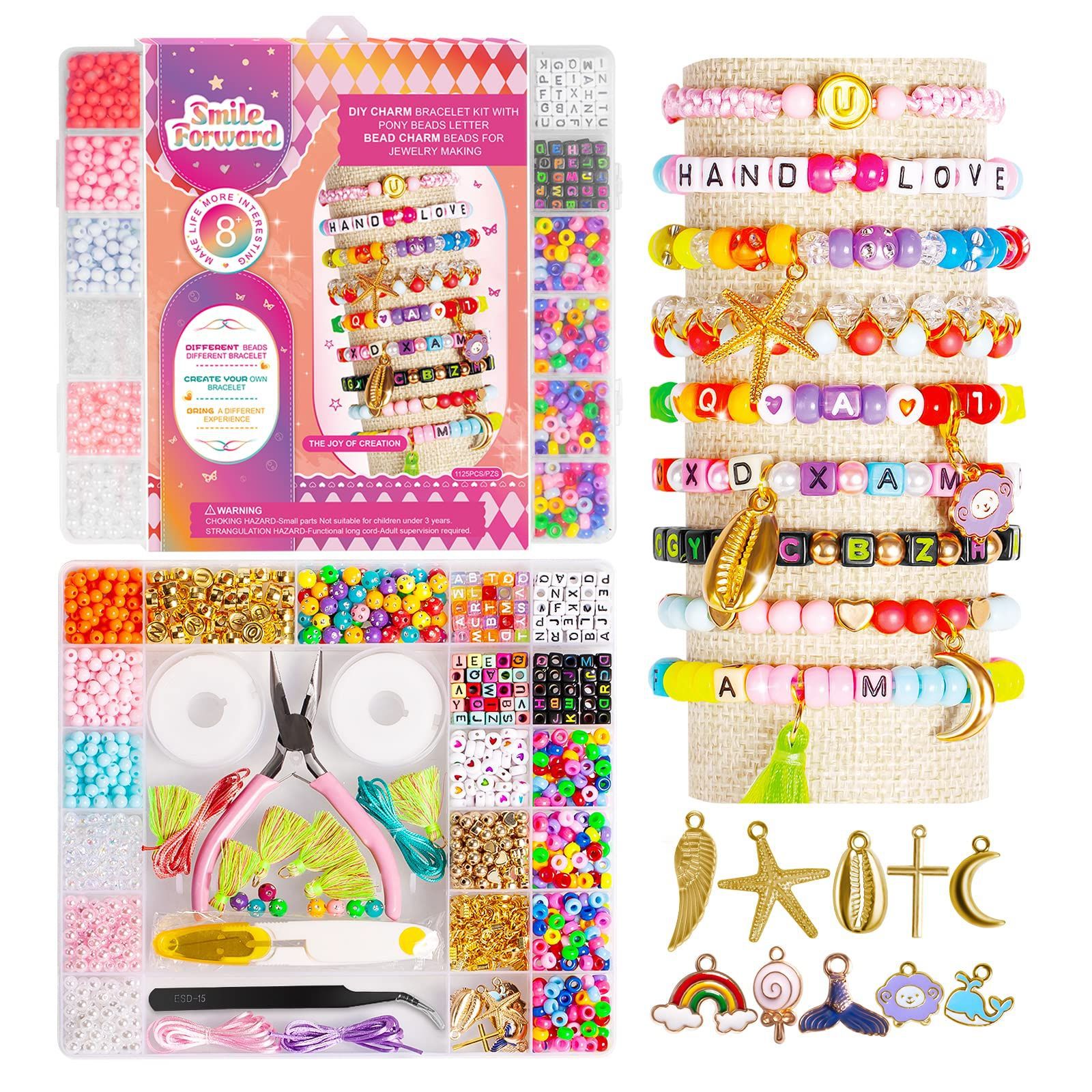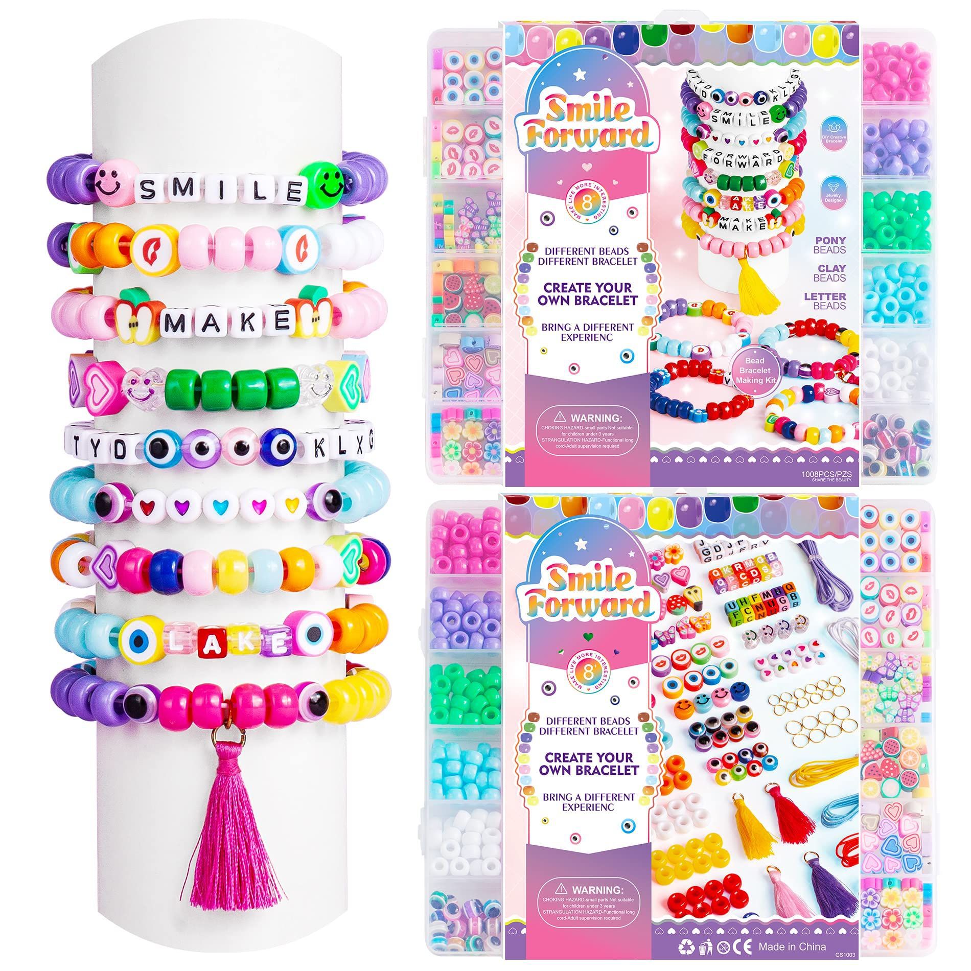 The Beads Kit usually with everything you need for making your own bracelets or necklace, from pony beads, wooden beads, alphabet beads, heishi beads, charms, chains, cords, findings and tools etc.. Perfect gifts for children and adults.
