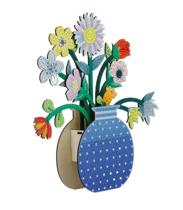 DIY Diamond Art Blue Flower Vase new and hot selling, made with wood material and diamond art beads, finished product size is 22×27.5x5cm. Perfect to decorate your home.