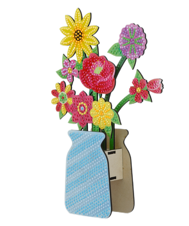 DIY Diamond Art Light Blue Flower Vase new and hot selling, made with wood material and diamond art beads, finished product size is 22×27.5x5cm. Perfect to decorate your home.