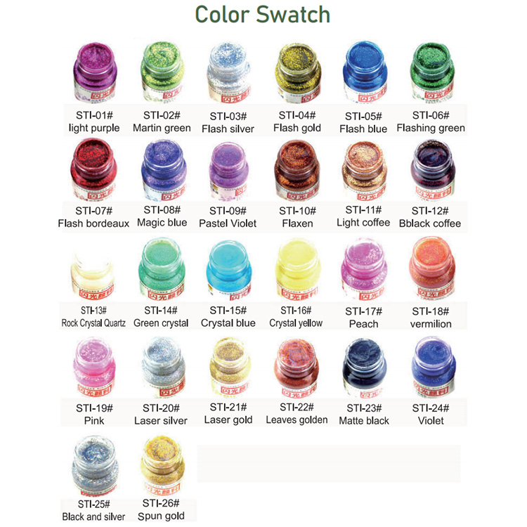 One of the best quality stickles glitter glue in the world, using fine glitter powder, acid free, and non-toxic, 26 colors in stock available, customized colors are welcomed, accept OEM orders. All colors feature a clear drying base. The easy-to-squeeze bottles feature a continuous flow fine tip, perfect for lettering and detail work, makes your art sparkle and embellish paper crafts and enhances rubber stamp projects with brilliant glitter colors without the mess of working with glitter and glue.