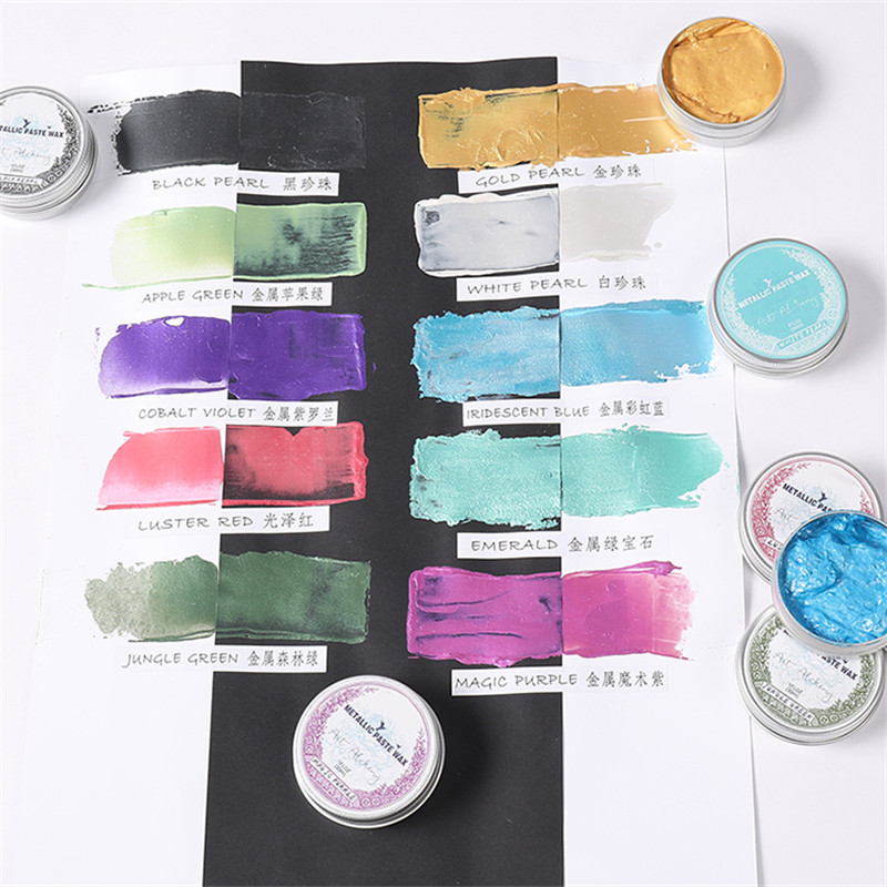 Let each picture show more wax paste metallic paint, after drying is not easy to fall off quick dry metal paint formula, can be in paper, metal, model works do arts and crafts and glass products surface can also be used for sealing wax seal, fake metal works do old, dry pigment is metallic simple sense, apply to the handmade, home decoration and so on a variety of scenarios.
