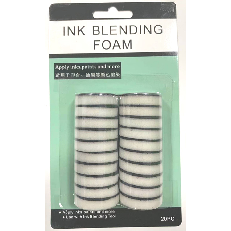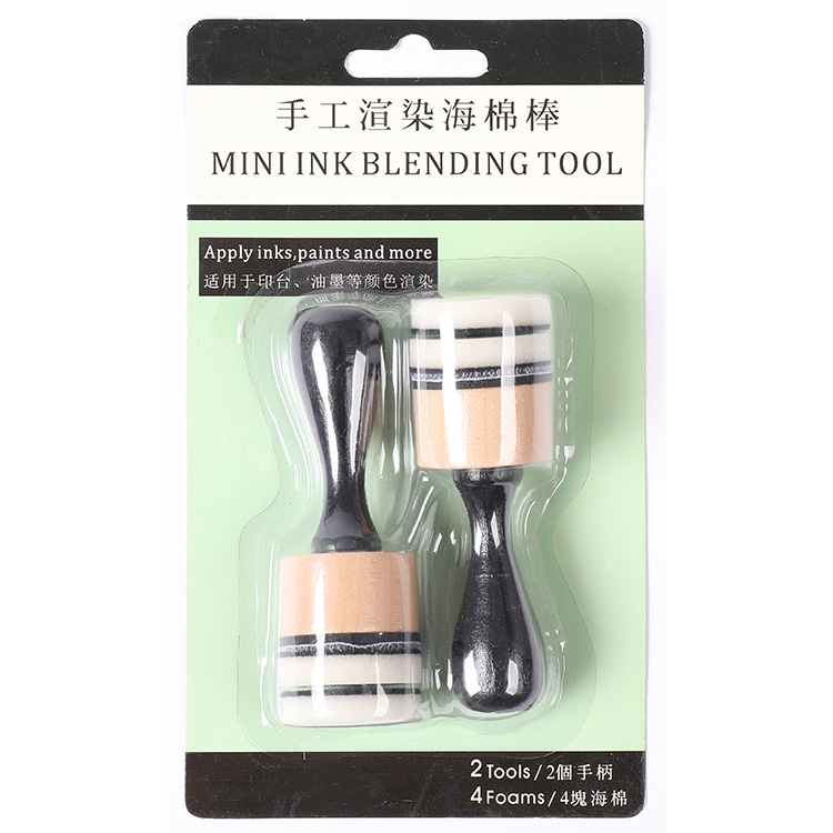 It contains 2 circular coloring handles and 4 circular replacement sponges. It is a coloring tool that can be used for paper, heat shrinkable sheet, cloth, plastic sheet, tag, particleboard and more materials. It is commonly used for color mixing on the printing desk or other pigments. Alcohol inks of different colors are dropped onto the felt, and then patted or circled on the paper. The brush head can be disassembled and replaced freely