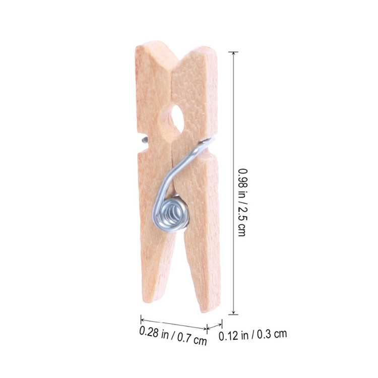 The size of small wood clothespins is 25*3mm. It’s made of natural material wood, and non-rusting galvanized stainless steel spring wire. The craft clothespins have heavy-duty clamp that they won’t break apart easily. Clothespins can be disassembled and reassembled. The sturdy wire springs will give you years of use. It’s perfect for hanging photos, cards, DIY decorations, school and office use. You can also use wood clothespins to make small toys work together with your children.
