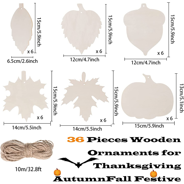[Value Set] : You will receive 36 pieces of pre-drilled wooden hanging accessories, 6 pieces of each style, and a 33-foot jute rope. Abundant in quantity and lovely in design to meet your various holiday decorating needs